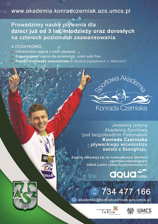 Sportowa Akademia pod patronatem Konrada Czerniaka zaprasza na naukę pływania na nowoczesnym obiekcie Aqua Lublin.