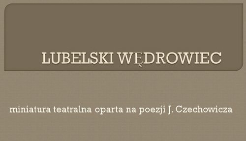 Kółko teatralne zainaugurowało swoją działalność w bieżącym roku szkolnym miniaturą "Lubelski wędrowiec". Jeśli macie pomysł ciekawego projektu teatralnego i jesteście chętni do udziału w pracy kółka, skontaktujcie się z p.Bogną Zagórską.