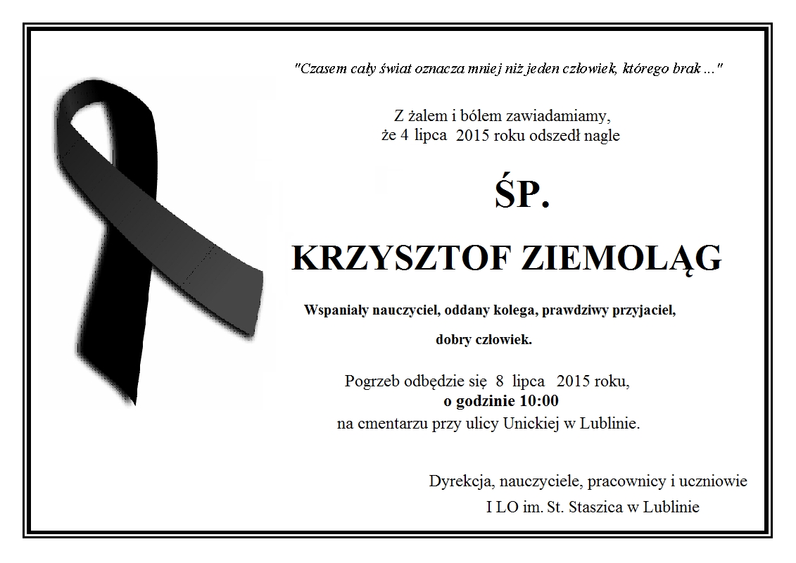 Zapraszam Rodziców uczniów klas I na zebranie z dyrekcjÄ… szkoÅ‚y i wychowawcami. Zebranie odbÄ™dzie siÄ™ 03.09. 2015 r. o godz. 17.00 w auli szkoÅ‚y. NastÄ™pnie w salach lekcyjnych odbÄ™dÄ… siÄ™ zebrania z wychowawcami klas.