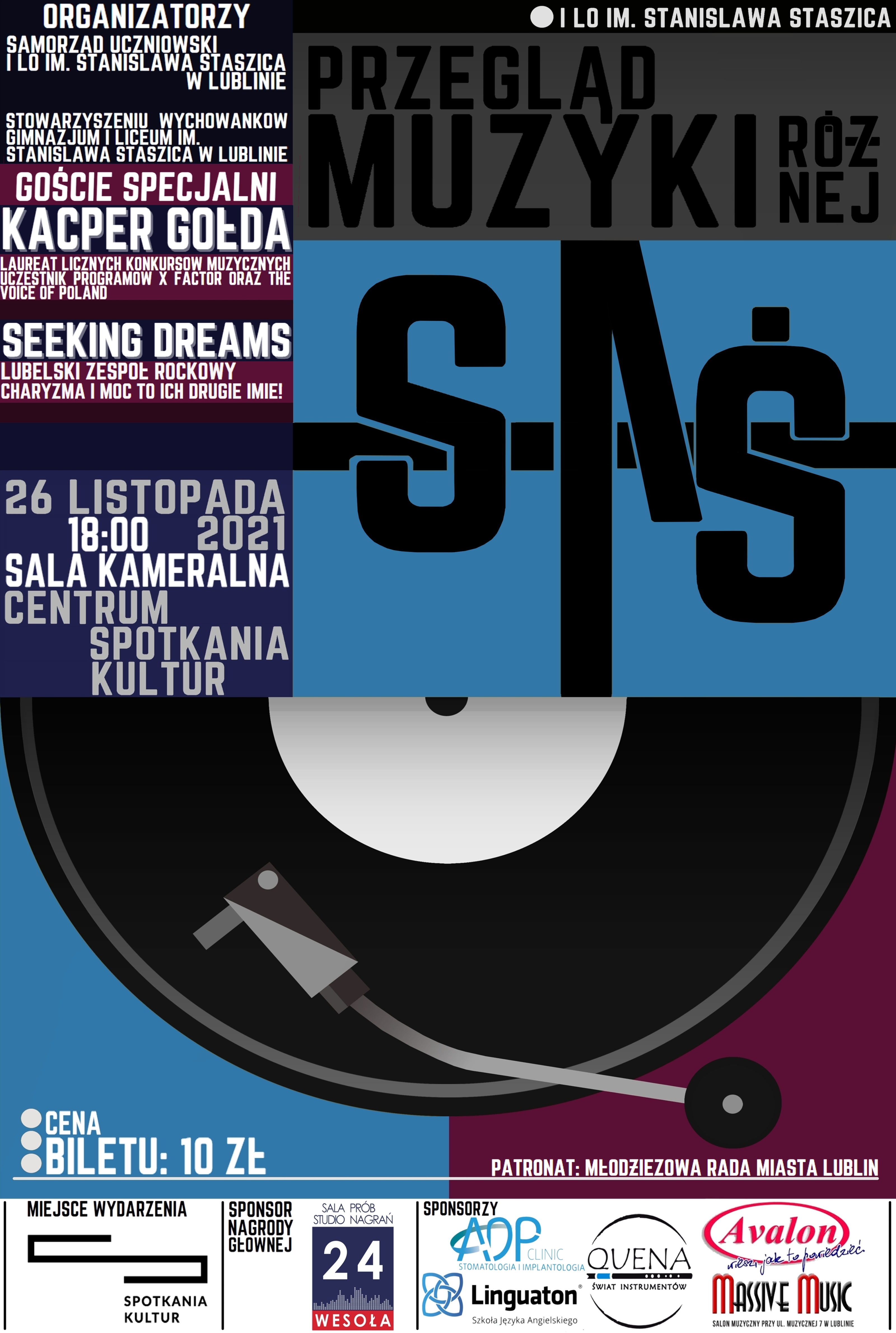 Z ogromną radością zapraszamy wszystkich chętnych na XXXI Przegląd Muzyki Różnej „Staś”, który odbędzie się 26 listopada 2021r. o godzinie 18:00 w Klubie Muzycznym Centrum Spotkania Kultur w Lublinie.
