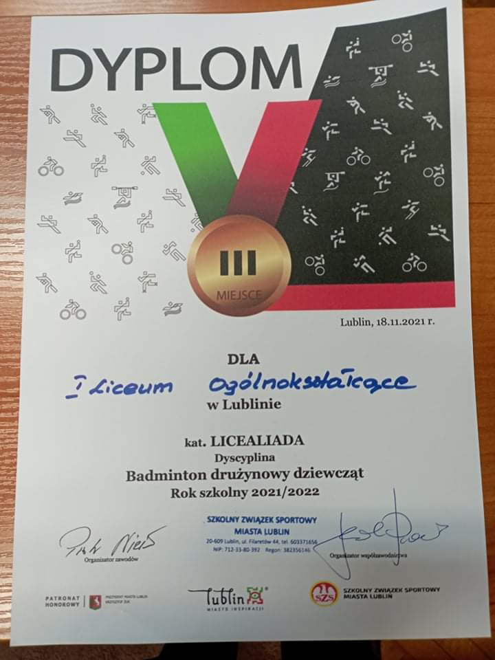 Uczennice naszej szkoły pod opieką Pana Adama Wawrzyniaka zajęły 3 miejsce w dyscyplinie badminton drużynowy dziewcząt